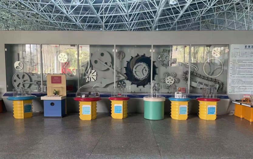 科学互动展区所展示的,是与人们日常生活和工作密切相关的用于度量、传动和制造等方面的机械展品,以及电磁、光学、益智等小型展品。通过观察机械装置的运转过程,了解机械基本元素、齿轮传动、链条传动、螺旋传动、连杆升降等多个机械原理。各种精美又有趣的机械装置通过巧妙的构思、独特的设计,引导观众发现机械之美、机械之巧和机械之妙。小型展品由观众手动操作,在动手的过程中,体验声、光、电、磁、力的科学魅力。