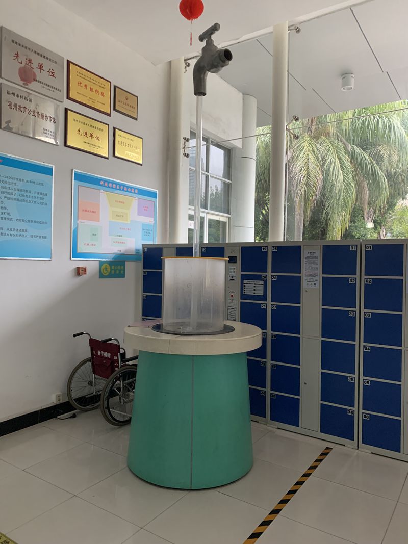 快看眼前这个孤零零悬挂在空中的水龙头居然能不断的淌着水!这是为什么呢?其实小朋友仔细观察 就会发现水流中存在着一根透明的玻璃管哦,也正是这根玻璃管联通了展台底端的水池再通过水泵的循环作用从而给我们造成了一种无源之水的“假象”。