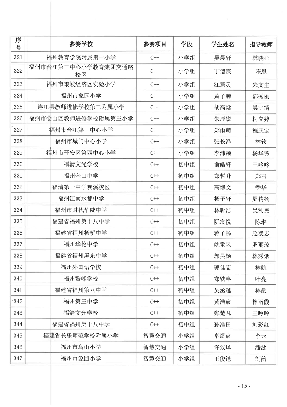 附件:关于公布第十九届福州市青少年机器人竞赛获奖名单的通知